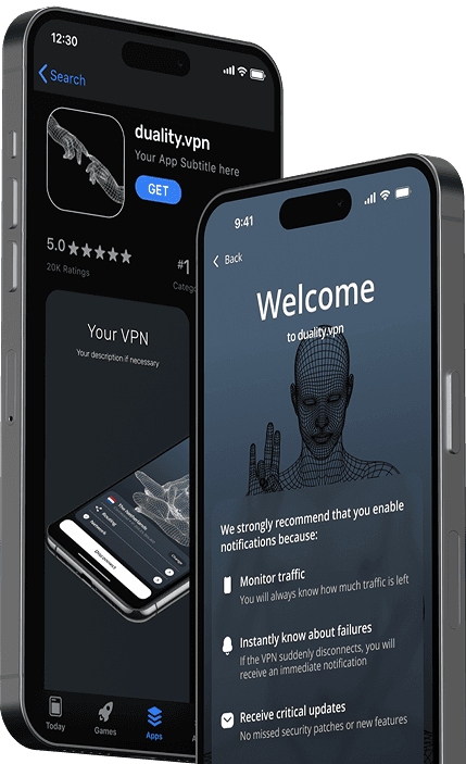Download Duality VPN from the App Store, Google Play, or our website for Windows. Install, log in, and connect—it’s that simple. You can also customize your experience in the app settings, including options to exclude local traffic from the VPN tunnel.